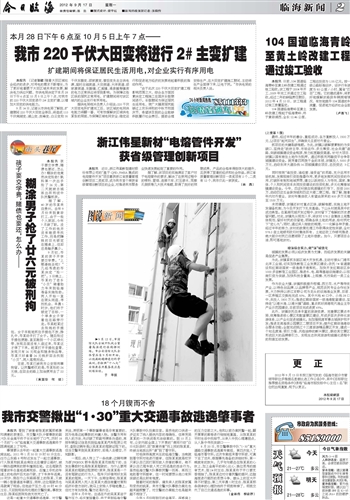 今日临海 临海新闻 02 2012-09-171 2012年09月17日 星期一