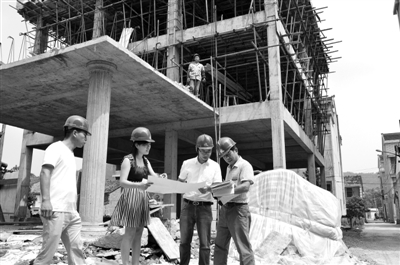 图为小芝镇三保村“第一书记”冯上国在村办公楼建设现场监督工程进展。张学利 摄