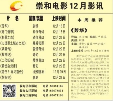 崇和电影12月影讯