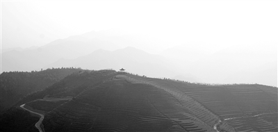 羊岩茶道全长5公里,环山而建,穿茶田而过,串联起十几个主要景点。游客或坐观光车,或租借园区特设的共享单车,或散步慢跑,皆可畅游全程。道旁的茶园每隔百米便换植茶种,并附上该一类茶树的相关介绍,茶文化融合在一草一木中,对爱好者来说可谓是一座自然“博物馆”。行在羊岩茶道即可俯瞰山景,在万物凋敝、草叶枯黄的寒冬,山茶犹绿,远近高低的梯田仿佛重重涌起的绿浪,令人眼明心静。山风一吹流云四起,数峰清瘦高现云中,千层茶绿深沉云底,可同仙境比拟。
