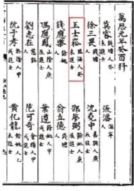 ②据《浙江通志》卷一百三十九、《明清进士题名碑录》,列朱国祚榜第二甲二十五名。王士琦亦中同科第二甲三十四名。