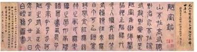 泰定三年(1326),任江南行御史台监察御史时,御史大夫脱欢恃势贪暴,百官皆敢怒不敢言,唯独泰不华以分台下级的身份弹劾罢黜之。(图一 泰不华《鲜于枢御史箴题跋》纸本小楷。美国普林斯顿大学艺术博物馆藏。图二 泰不华《陋室铭篆书卷》篆书m。北京故宫博物院藏。)