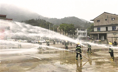 据悉,今年各镇行政村规模调整后,沿江镇在原有消防队伍力量基础上新建10支村志愿消防队,现共计20支队伍。每月,由该镇消防工作站、派出所牵头,组织开展集体技能培训。图为本月组织的手抬机动泵单干线水枪出水操作训练,该操作可以基本扑灭普通初期火灾。