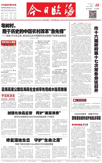 今日临海 一版要闻 01 2018-11-121 2018年11月12日 星期一