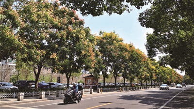 秋风送爽,江滨城墙下的黄山栾树进入盛花期。湛蓝的晴空下,黄山栾树身姿挺拔,绿叶中缀满了红的、黄的花朵,在秋阳下闪烁着金色的光芒,看上去艳丽动人,成为江滨路上一道美丽的风景,也为秋日里的府城增添了一抹独特的韵味。 孙海康摄