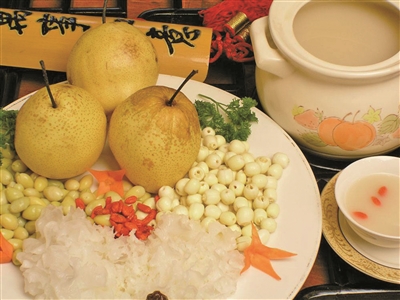 饮食“润”。1.补肺防燥。入秋以后气候干燥,“燥则润之”,建议多吃养阴润肺防燥的食物,如莲子、百合、银耳、南瓜、枇杷。脾胃功能虚弱、容易消化不良的人,可以吃茯苓、芡实、山药、小米、白扁豆,口干舌燥者可以加麦冬、石斛、太子参等。推荐两个食疗方。一是增液汤:取玄参15克、麦冬12克、生地12克,一起煎水,出现口干口渴、复发性口腔溃疡、习惯性便秘、慢性咽炎等情况可以服用。二是银耳百合羹:银耳、百合性味平和,二者一起煮羹饮用,可以补气养阴、润肺止咳、宁心安神,适合容易上火、虚不受补的人群。