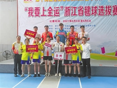 本报讯 (记者孙海康)6月4日至6日,“我要上全运”浙江省毽球选拔赛在我市桃渚镇乐康体育篮球馆落下帷幕。桃渚中学毽球队的健儿们代表台州市参加比赛,经过激烈角逐,包揽了青年组的所有冠亚军,成功晋级第十四届全运会毽球项目的决赛。
