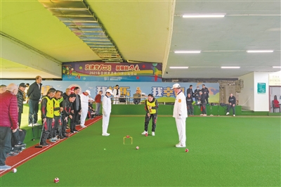 12月6日至8日,由台州市老年体协主办、我市老年体协承办的2021年台州市老年门球交流活动在我市临海大桥下门球场举行,来自台州各县(市、区)的130余名选手参加了活动。经过激烈角逐,台州市直代表队夺得第一名。 孙海康摄