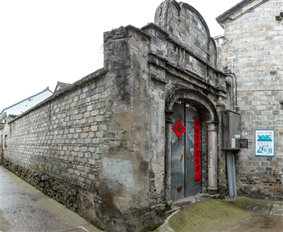 当人们穿过西门街,走进后山路,来到一座爬着几根黑油油的何首乌藤的高达4米多的夯土墙外时,只见墙面上嵌着一扇紫褐色的古石窗,窗的下边无规则地砌着几块印有“耀明公司一九五○年”字样的砖块,表明1950年耀明公司曾特制一批砖块,对围墙和内墙进行了一次大的修复。围墙内的主要房屋坐北朝南,台门朝东,门的整个框架是用砖头砌成的。逢人推门进去,一只黑乎乎的铁门环在破旧的门板上总会发出轻轻的响声。这就是当年耀明电灯公司的旧址、临海电力的始发处。