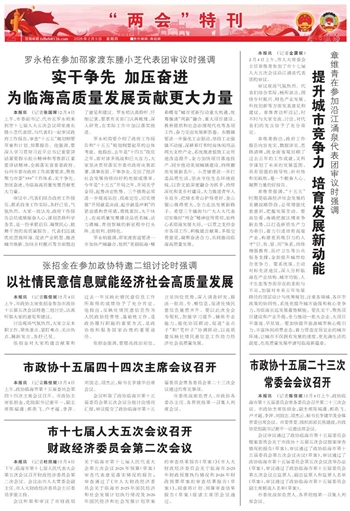 罗永柏简要介绍了政府工作报告和“十五五”规划纲要起草的总体考虑。他指出,去年是“十四五”收官之年,面对诸多挑战和巨大压力,大家坚决贯彻落实市委市政府决策部署,谋事在前、干事争先,交出了经济社会发展持续向好的亮丽成绩单。今年是“十五五”开局之年,开局关乎全局,起势决定胜势。三个镇街必须进一步提高站位、找准定位,切实增强“开局就是决战、起步就是冲刺”的紧迫感和责任感,勇挑重担,大干快上,在高质量发展建设品质名城、活力港城、青创智城的新征程中打头阵、走前列、创特色。